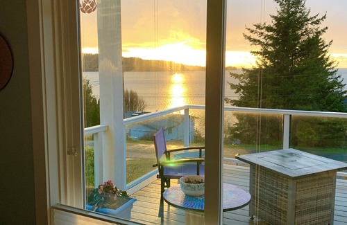 Beautiul Setting for intimate yet spacious getaway. Private deck off Master Suite with view of Islands and Mts. International water views give nonstop beauty no matter what the weather. The light and sunsets are goregous. Full kitchen, great room with fireplace, internet and tasteful decor welcome you to relax. Immerse yourself in a new environment that will open possibilities for new adventures.