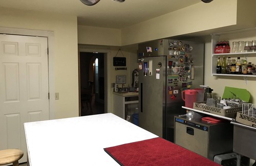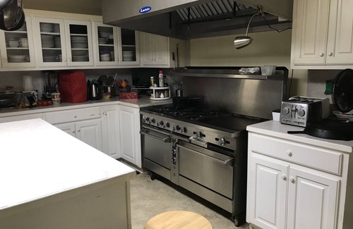 The house is a large, welcoming, two story, ten bedroom, 13 bath home secluded on 8 manicured acres of lawn, trees and rose bushes. Nine of the bedrooms have one queen bed, the tenth has a queen and two twins. Two of the rooms have a private front and back entrance. Each bedroom has a spacious private bath with a jetted tub. On the second floor there is a media room, great for watching family movies. The front of the house has a veranda with rocking chairs. The back of the house has a large covered patio with tables and chairs, a large lawn and a pergola. For cooking there is a commercial kitchen as well as a giant smoker near the barn away from the house. The dining room has two large table that can each seat 6 and room for additional tables if needed. The living room has a comfortable couch and chairs and a large, flat screen television. Between the living room and the dining room is a gas fireplace for those cool nights. The laundry room has two washers and two dryers.