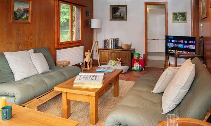 "Quinette", 5-room chalet on 3 levels, south facing position. Spacious, partly renovated in 2025, comfortable and beautiful furnishings: entrance hall. Large living/dining room with dining table. Exit to the terrace, south facing position. Lounge. Exit to the terrace, south facing position. Large kitchen (dishwasher, 4 ceramic glass hob hotplates, toaster, kettle, electric coffee machine, Capsules for coffee machine (Nespresso) extra, raclette grill, fondue Set (cheese)). Exit to the terrace, south facing position. Shower/WC. Upper floor: 1 room with 1 bed (140 cm, length 200 cm). Exit to the balcony, south facing position. 1 large room with 1 french bed (1 x 180 cm, length 200 cm), hand-basin. Exit to the balcony, south facing position. 1 room with 1 bed (140 cm, length 200 cm). Sep. WC. 2nd upper floor: 1 large room with sloping ceilings with 1 french bed (1 x 160 cm, length 200 cm). Shower. Large terrace, south facing position, patio, south facing position. Terrace furniture, deck chairs. Beautiful panoramic view of the mountains. Facilities: washing machine, dryer, hair dryer. Internet (WiFi, free). Parking (2 cars) at 50 m. Please note: non-smokers only.