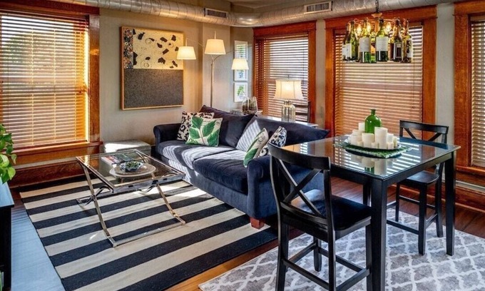 FLAT #3, Quinnimont - Lafayette Flats Boutique Vacation Rentals is four modern vacation rentals in one historic building. This listing is for Flat #3, Quinnimont which is found on the third floor. Walk up the 42 stairs through the airy art-filled stairwell to reach your beautiful flat (please note: there is no elevator in this historic building). Quinnimont is designed to luxuriously accommodate two adults, as are all four vacation rentals at Lafayette Flats.