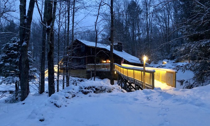 Quintessential Vermont Cabin - 4 fireplaces, hot tub, and fire pit is located in Killington. Quintessential Vermont Cabin - 4 fireplaces, hot tub, and fire pit provides accommodation, featuring Sports/Activities, Bedding/Linens, Fireplace/Heating, among other amenities. This House features Sports/Activities, Bedding/Linens, Fireplace/Heating, to make your stay a comfortable one.