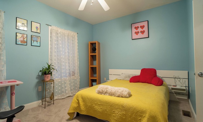 A well-equipped kitchen invites you to showcase your culinary skills, prepare delicious meals, and a dining table set of 6 in the very spacious dining room, provide the best setting for an indulgent feast or an intimate gathering. The last room downstairs - the ultimate relaxation experience is our stunning bathroom with a jetted tub. Immerse yourself in warm, bubbling water and let the cares of the day melt away. Alternatively, you can luxuriate under the soothing streams of the rain shower head in our second bathroom upstairs, providing an invigorating start or end to your day. Lastly, the upstairs floor displays two bedrooms that offer a peaceful haven for a restful night's sleep. Each bedroom is thoughtfully furnished with comfortable beds, soft linens, and ample storage space for your belongings, in addition to a large gaming chair and desk in one bedroom and a reader’s desk in the other. Wake up feeling rejuvenated and ready to embark on another day of adventure.