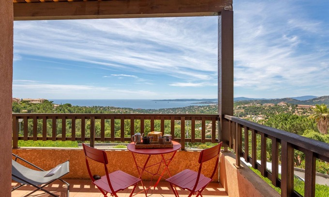 3-room apartment 45 m2, on the ground floor, south-west facing position. Bright, renovated in 2024, beautiful furnishings: living/dining room with TV (flat screen). Exit to the terrace. 1 room with 2 beds (80 cm, length 190 cm), shower. 1 room with 1 french bed (1 x 140 cm, length 190 cm). Open kitchen (dishwasher, 2 ceramic glass hob hotplates, toaster, kettle, freezer, electric coffee machine, combination microwave). Bathroom, sep. WC. Air-conditioning, forced-air heating. Small balcony 5 m2, south facing position and west facing position. Balcony furniture. Beautiful view of the sea and the valley. Facilities: washing machine, iron, hair dryer. Internet (WiFi, free). Parking. Please note: non-smokers only. Maximum 1 pet/ dog allowed. Smoke alarm, no lift. Offer by a private individual according to Art. 155, IV of CGI. 83107002315K7