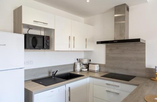 Résidence Domaine d'Arca Porto Vecchio - T2 haut standing - 4 personnes "David 7" is located in Porto-Vecchio, just 19 miles from Former Chapel of the Trinity and 27 miles from Archaeological site of Cucuruzzu and Capula. 2.2 miles from Porto Vecchio Port and 17 miles from Bonifacio Port, the property features an outdoor swimming pool and a terrace. The property also offers private parking and facilities for disabled guests. The air-conditioned apartment consists of 1 bedroom, a living room, a fully equipped kitchen with a dishwasher and a coffee machine, and 1 bathroom with a walk-in shower and a hair dryer. A flat-screen TV is available. The accommodation is non-smoking. The Lion of Roccapina is 27 miles from the apartment, while King Aragon Steps is 18 miles from the property. Figari-Sud Corse Airport is 13 miles away.