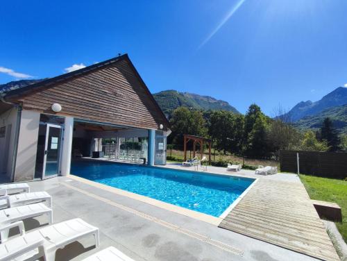 Set in the Pyrenees National Park, this residence is a 5-minute walk from the spa resort Luz Saint Sauveur. It features a wellness center with a swimming pool. A flat-screen TV with international channels is provided in the living room in each self-catering apartment. Some apartments offer mountain views from the balcony. All of the apartments feature wooden furnishings. A microwave, dishwasher and fridge are included in the kitchenettes. Ski storage and linen are also provided in the apartments at Résidence Val de Roland. Free Wi-Fi access is available at reception, which has a lounge area with an LCD TV. Laundry facilities are provided on site and clothes dryers are available upon request. The Gavarnie Falls waterfall and the Brèche de Roland rock formation are 12 mi from the residence, and private parking is free on site. The ski slopes are a 20-minute drive away.