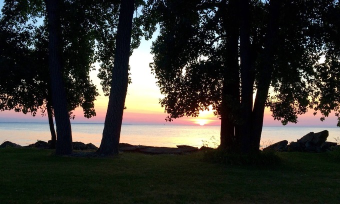 A charming family cottage with Lake Erie in front for sunrises, and Lake Henry in back for sunsets!!! It is surrounded by the Lighthouse Point Nature Preserve. Fun in the sun, with a beautiful beach 100 yards from the house. Hike the nature trail steps from your door, rent a bike and tour the island, visit the wonderful Pelee Island Winery, or just relax and sit on the deck! Linens are not provided. Please bring your own towels and sheets. Blankets and pillows are on beds. 4 twins and one full size.