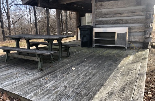 this is an r v site. it has 30 amp electric. it has it own water and sewage.. t there is a community shower house with seperate mens and womens sides. there is a comunity cooking area with refrigerater and freezer a cooker/smoker. fire pits are also available. the area is perfect for hicking or just relaxing. there are 2 stocked ponds that the kids can fish in. we ask only that you leave your 4 wheelers at home so you dont bother other guest.there is 1300 acres here with great trails for horse back riding also.this is site number 1