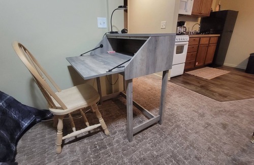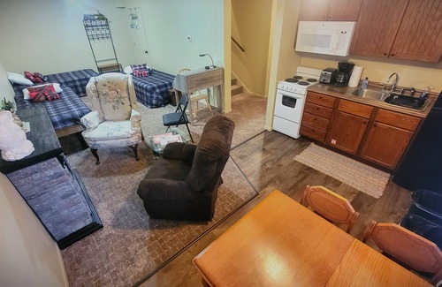 The Rabbit Hole Suite is located on the basement level of the Turtle Lodge with a window view looking out into the yard. This cozy space is complete with a kitchenette, electric fireplace, desk and a spacious bathroom. Turtle Lodge is located in the driftless bluffs of the Whitewater River Valley, just outside of the tiny town of Elba and Whitewater State Park, with river frontage on the Whitewater River. Turtle Lodge has 3 private suites and a Gathering Room. The Gathering Room (not included with suite rental) has a wood fireplace, dining area, chairs and full kitchen, that can be rented separately for a daily rate, contact the host for pricing and availability. There is also a cabin and small campground on the property. Located in a rural area with a mix of wooded bluffs, river and farmland.