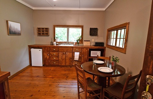 Please note our historic fish camp cabins do not have A/C. It is not usually needed in the mountains. Enjoy the fresh mountain air!