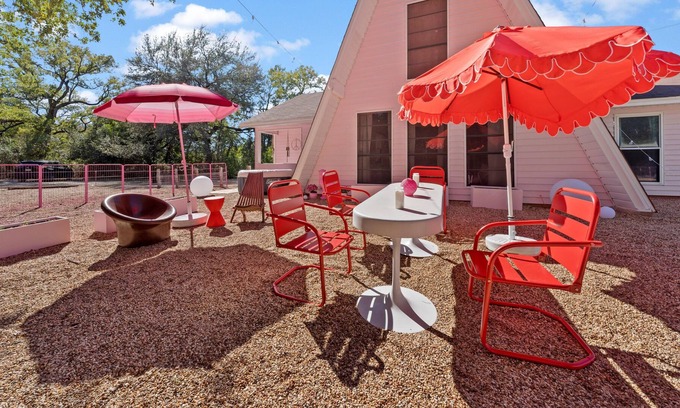 Rad, Pink A-Frame 10 min Magnolia + Baylor in Waco, TX is located in Lacy-Lakeview. Rad, Pink A-Frame 10 min Magnolia + Baylor in Waco, TX provides accommodation, featuring Bedding/Linens, Child Friendly, Internet, among other amenities. This House features Bedding/Linens, Child Friendly, Internet, to make your stay a comfortable one.