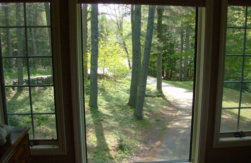 One time Bed and Breakfast (School House Corner BNB). 3 bedroom, 2 bath. Sleeps 7-8. 1.5 hrs from Boston. 30 minutes to Tilton NH shopping center and restaurants. Spectacular views of Ragged Mountain ski slope. Paved country road, minutes to Ragged Mountain Ski Resort and Lakes Region. 3 min to Northern Rail Trail (hiking and biking in summer and snowmobiles in winter). Cardigan Mountain 25 minutes. Laconia 40 minutes. Remote yet minutes to grocery store and restaurants. Master bedrooms one and two, have two king size beds with bathrooms. Third Bedroom has one queen and two singles. Pellet Stove insert in fireplace with Direct TV over Fireplace.