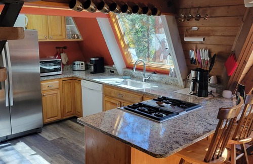 The Rail Stop Cabin: First time on VRBO in its 50 year history!!. Unique Stone and Pine Interior and located on a private setting in the Historic Loop Railroad area.. Meticulously maintained and plenty of amenities to make your stay comfortable this 1350 sq ft cabin contains a master bedroom and loft bedroom with 2 full baths. This property can sleep up to 4 guests in the following setup