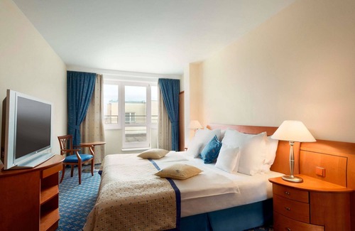 Best-rates for the Nove Mesto hotel starts from $352 per night with includes Child Friendly, Pool, Accessibility, Business Services, Bedding/Linens, Bar, Internet, Laundry, Designated Smoking Area, Wheelchair Accessible, Wellness Facilities, Restaurant, Breakfast, Parking, Toiletries, Kitchen, TV, Guest Services StayAndPlay offers fully equipped golf villas, golf hotels, golf resorts, luxury golf cabins, and exclusive golf retreats, making it easier than ever to find your perfect golf escape — ideal for families, peaceful getaways, or pet-friendly retreats with the whole crew.
