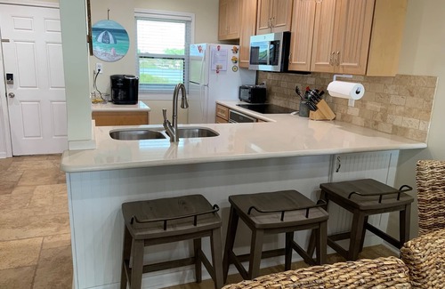 TREAT YOURSELF to this view on your private beach! Our gorgeous renovated 2 bedroom and 2 1/2 bathroom condo in the Sunnyside beach area is the perfect place to relax and enjoy the sunset on either of the two balconies with expansive unobstructed views overlooking the Gulf.