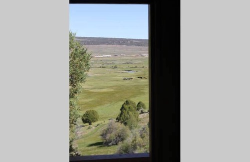 The private deck offers panoramic view across the ranch's pastures (where you will see cattle and horses during the summer), the Sevier River winding through the ranch, and the Hatch valley. A small, shared charcoal BBQ is available for your use outside (charcoal, matches, and lighter fluid not provided).
