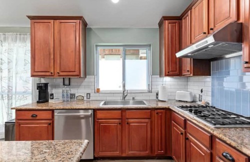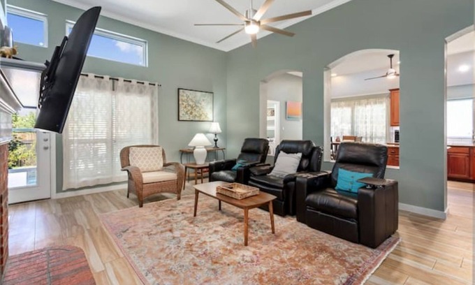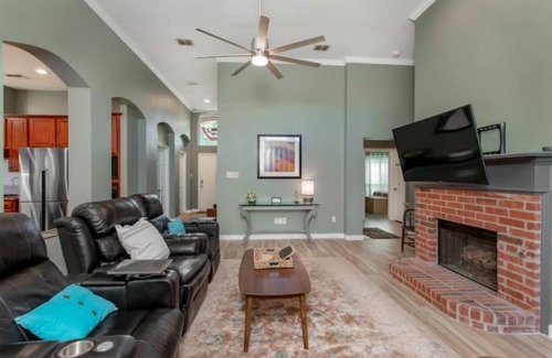 Comfortable furnishings and warm decor offers a cozy feel in this single story home (one small step from the garage to the inside). Updated modern master bathroom, new Fanimation/Minka ceiling fans added to all areas, central air/heating, private 2 car-garage+driveway parking at the back of the house are just a few conveniences for your stay.The home is comfortable for 4-5 people; if there is a group of six people, please feel free to connect first.