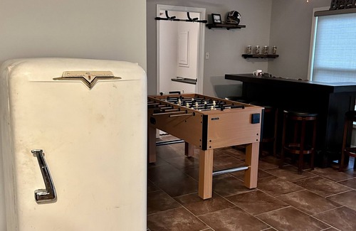 Open concept living/kitchen area with deck, a patio off the walkout in the basement - with a bar and foosball table- perfect for a family or group of friends.