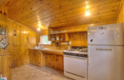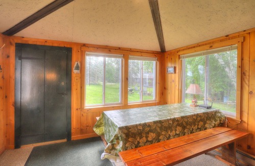 FAQs: Shared waterfront beach and boat launch, charcoal grill (available mid-May through mid-October), canoe and paddles for guest use, 2 ceiling fans.