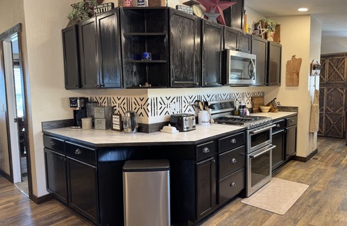 Welcome to Rangeline Retreat, a one-of-a-kind country Western escape that blends rustic charm with modern sophistication. Perfect for events, romantic getaways, or family vacations. Great for outdoorsmen and fishermen with families—enjoy high-speed WiFi, a gourmet kitchen, spa-style baths, and plenty of outdoor space to relax, unwind, and park boats, trailers, or extra vehicles with ease. Cozy up by the fire pit, play yard games, or sip coffee on the swing.