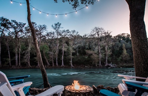 A 500 foot crushed granite trail leads down to the Guadalupe river bank. There is a sitting area overlooking the rapids w/ Polywood Adirondack chairs & a propane fire pit. More steps lead down to the river rapids which are about 1-2 foot deep. Perfect for sitting in & relaxing. Tie your tube up to a boulder & relax.