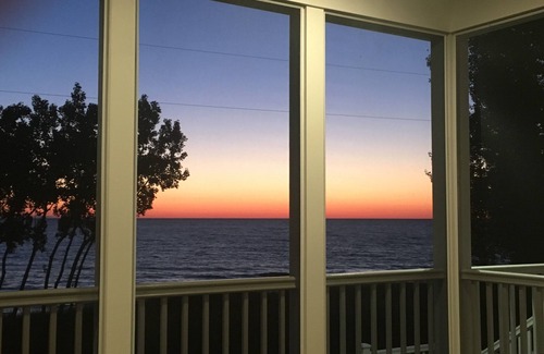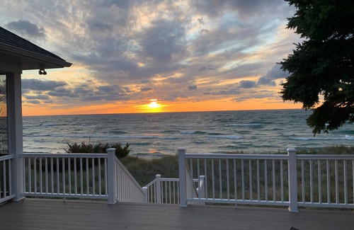 When you step out onto the spacious deck, you'll hear the waves and see the gorgeous, panoramic views of Lake Michigan. Relax outside on the comfortable deck furniture or enjoy a cup of coffee in chairs/table overlooking the water. In addition, there is a large screened in porch with an additional table and chairs, allowing you to enjoy the view morning and night, rain or shine.
