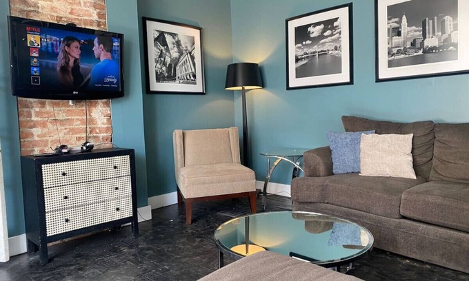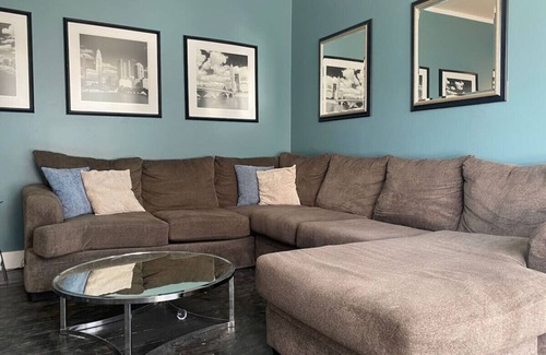 Our property offers 4-6 vehicle parking and is ideal for work crews traveling with trucks and tools. The location provides quick access to downtown and attractions like Great American Ballpark (7 min drive) and Paul Brown Stadium (9 min drive). The massive home has a charming, spacious layout with 3 living rooms and private spaces for peace and privacy. Please note that the stairs are steep due to the home's older construction standards.