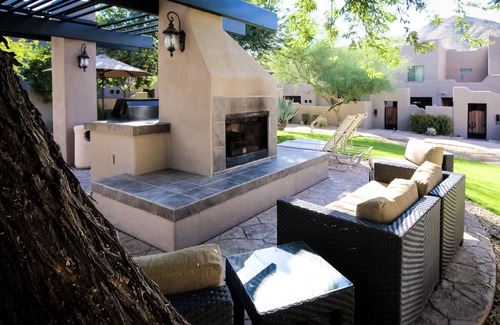 Located amongst towering mountains lined with saguaro cactus and miles of fertile Sonoran desert, Cave Creek villa is the perfect place for you to enjoy the best that Arizona has to offer. Nestled at the base of Black Mountain, this villa is surrounded by peaceful desert foothills and located just minutes from Scottsdale's shops, restaurants, and cultural attractions. This is just the spot to immerse you in the beauty and tranquility of the onsite and nearby amenities. Hiking, biking, and golf are just a few of the increasingly popular activities to experience during your stay. No matter how you wish to spend your vacation time, there are wonderful memories to be had while visiting Cave Creek.