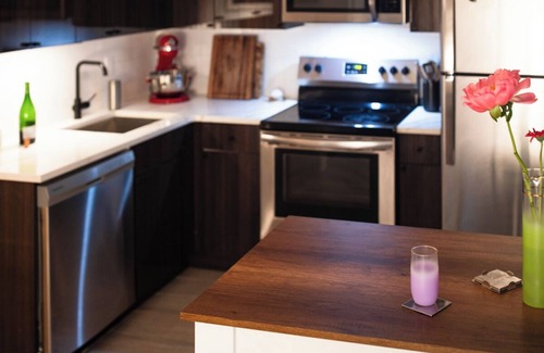 The apartment is adorned with contemporary photography art and exquisite interior design, ensuring a stylish and comfortable stay. Book now for a luxurious summer retreat in trendy Bushwick!