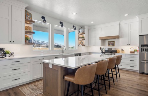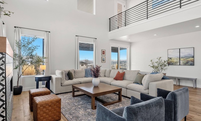 Experience your Bear Lake vacation in this spacious 38-person retreat featuring big living rooms, game tables, huge bedrooms, private hot tub, large kitchen space, and indoor pickleball/basketball in the garage. Dogs are welcome.