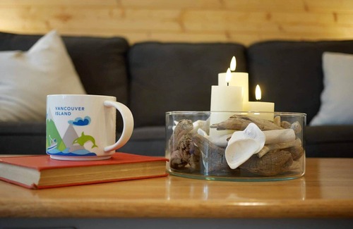 A pleasant five-minute walk down our street takes you to a children’s playground, soccer fields with a peek to the ocean, and Ravensong Pool. From there, a forested path leads you to Second Avenue, where you can browse boutique shops, break for a drink at your choice of several coffee shops, and find some tasty bites at neighbourhood restaurants serving a range from sushi to gourmet burgers. Prefer to make use of the Nest’s kitchen by being your own chef during your visit? A short amble further takes you to great selection at Quality Foods and, if it’s Saturday, you can peruse the Farmer’s Market to bring home fresh local produce.