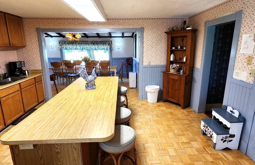 The Ranch House features a nostalgic country decor and has a large kitchen with a 6ft. island and 12-person table, comfortable family room, formal dining room, five bedrooms and two full baths. Linens and kitchenware provided, as well as flat-screen cable TV. There is a playground in the side yard, and plenty of lawn space, making this a wonderful spot to spend quality time with family and friends! Fire pit and gas grill - firewood and propane provided. Guests at River’s Bend Ranch can enjoy fishing, birding, scenic walking trails, and horseback rides along our stretch of the Shenandoah’s South Fork—open to all ages and abilities. With easy access to Luray Caverns, Skyline Drive, the town of Luray, hiking, kayaking, and more, there’s something for everyone. Kids (and adults!) will love meeting our farm animals, including sheep, cows, chickens (and sometimes baby chicks!), horses, barn cats, and our friendly, attention-loving dog.
