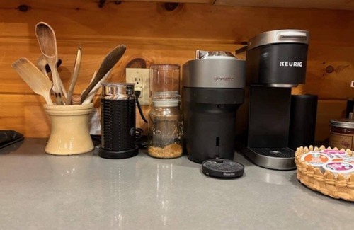 This real log cabin will delight your family, friends, and pets. We decorated this place with real pieces of art, antique furniture, and elegant finishes.