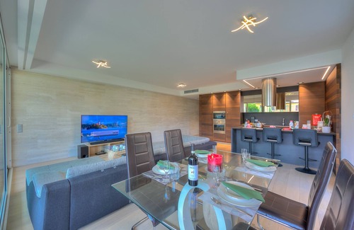 Providing the perfect sleek and restful retreat for leisure and business stays in Lugano, this 3-bedroom retreat enjoys a great location in the desirable city enclave of Paradiso. Its strategic setting enables groups to kick back and relax or take on the city sights and amenities with ease (central Lugano is 10-12 minutes’ drive away and is also reachable on foot in 20 minutes’, via the scenic lake promenade of Belvedere Park).