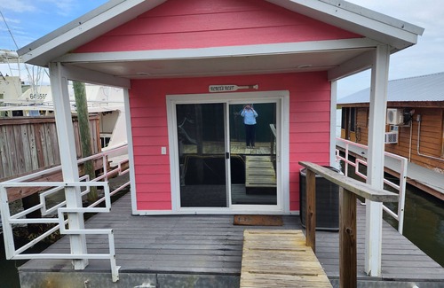 This floating home offers sweeping waterfront views of the river with spectacular sunrises and sunsets. The moon reflecting off the water provides a backdrop for a romantic dinner on your waterfront porch. You will enjoy a peaceful stay in this cozy one bedroom chalet while being entertained by a variety of wildlife including bald eagles and pelicans looking for their next meal. You will see dolphins swim by as they follow the commercial fishing boats hoping that they will capture some of their catch . The boating traffic in this low wake area includes both large pleasure yachts as well as the famous Apalachicola commercial fishing boats out for their oyster, shrimp and grouper. There are fishing rods available onboard for your afternoon relaxation. Parking is only a few steps from your vacation houseboat.