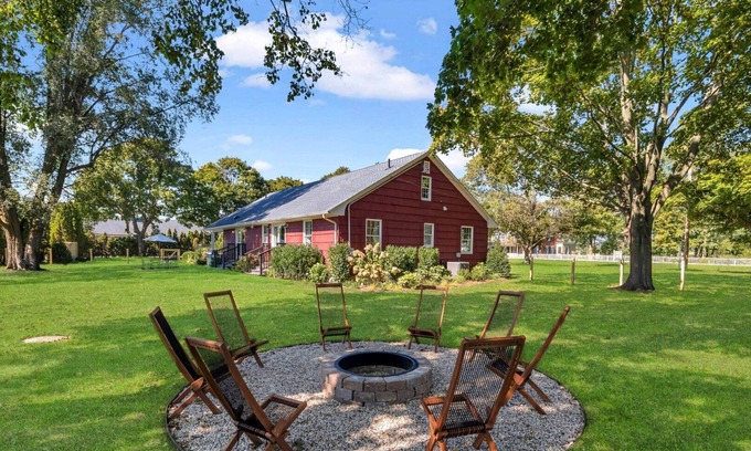 Nestled in the picturesque town of Riverhead, within the idyllic wine country of the North Fork, this exquisite vacation rental is a gem waiting to be discovered. Set against the sprawling 205-acre estate of the renowned RG|NY Vineyard, this recently renovated and redesigned home boasts three spacious bedrooms and three elegant bathrooms, comfortably accommodating up to eight guests. The spacious yet intimate interior is dotted with multiple sitting areas, making it an ideal sanctuary for families or groups seeking a serene escape from the hustle and bustle of daily life. What's more, the privileged location offers guests unparalleled access to exclusive wine tastings and vineyard tours.