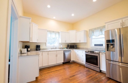 This beautifully restored downtown cottage exudes history and elegance. The high ceilings and beautiful furnishings makes the home feel spacious and comfortable, despite it’s early 1900’s construction. The beautiful, historic, heart pine floors and classic front porch will transport you into a simpler time, while offering the luxury of modern amenities. The four bedrooms and three baths are perfect for families or groups up to 8 people.
