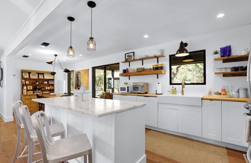 Red Bird Cottage is the ideal location for your Hill Country getaway! This secluded home offers the perfect balance of privacy and convenience considering its proximity to downtown Wimberley. Red Bird Cottage offers one king and one queen bed, sits on 1.5 acres, and is perfect for a couples getaway. With stylish fixtures and furnishings, this modern farmhouse is as luxurious as it is comfortable.