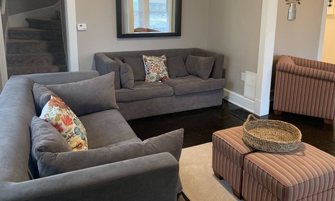 Beautifully restored 105-year-old home. 4 Bedrooms & 2 bathrooms, living room with 50-inch smart TV and big eat in kitchen. Master bedroom also has a desk so you can make use of the fast Wi-Fi for work or schoolwork.