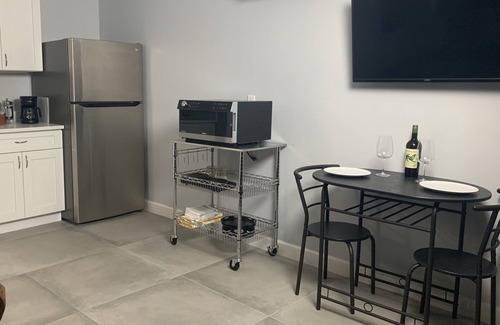 A private red door entrance leads you to your intimate stay away in a comfortably furnished modern studio apartment. The new kitchenette is equipped with everything you need from morning coffee to a home cooked meal. You’ll definitely appreciate the perfect pressure of hot water from the modern shower in the bathroom.