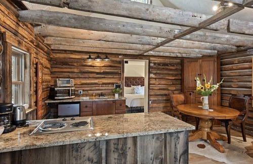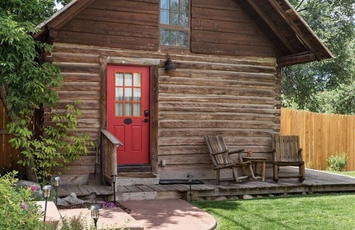Tucked behind a quiet home just steps from downtown Carbondale, The Red Door Hideout offers a unique stay steeped in Roaring Fork Valley history. Built in 1888 and originally part of the Seeburg Ranch (now Aspen Glen), this log cabin has been carefully preserved and relocated—bringing its storied past into the present with quiet elegance and modern ease.