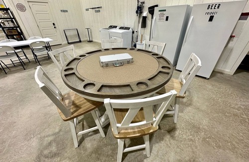 Garage has a Freezer for your fish and a Refrigerator for your convenience, a Banquet Table with 6 chairs, Game Table and a Commercial Ice Machine. Not to mention the Atari Video Game - Free Play of Course