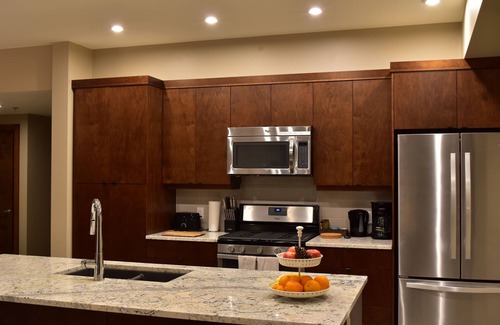 You literally step out of the condo, click on your skis and off to the lift. All high end features with high end appliances. Gas stove and and filtered water in the fridge that provides plenty of ice. . There is 65 inch screen tv, with an x-box. There is a hot tub on the balcony. There is a washer and a dryer. Underground parking and a place to warm up your boots on the heated floors and boot heater to boot. .