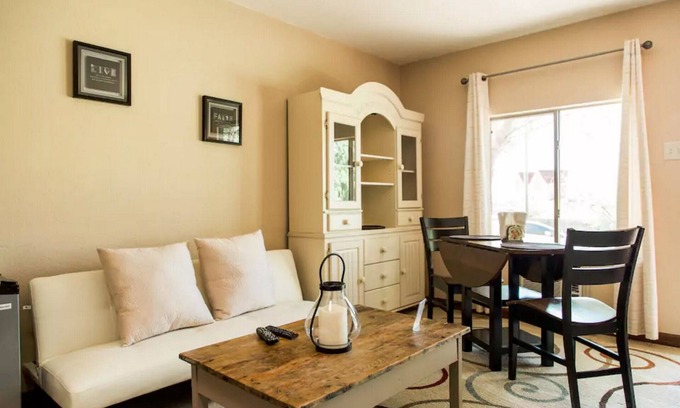 Red Robin Casita is a quiet, clean, inviting place. There is a large dressing room that could also be used as a quiet spot away from the television in the main area. Waking up to the sound of many birds singing is a very nice way to start a day. The skylight will let the sunshine in while you enjoy coffee.