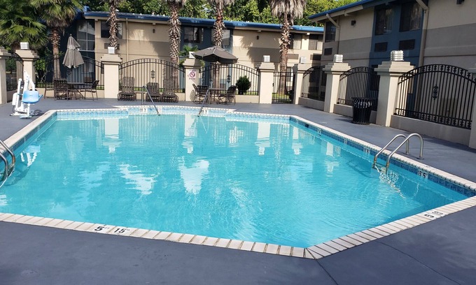 Suburban hotel with a 24-hour front desk and an outdoor pool