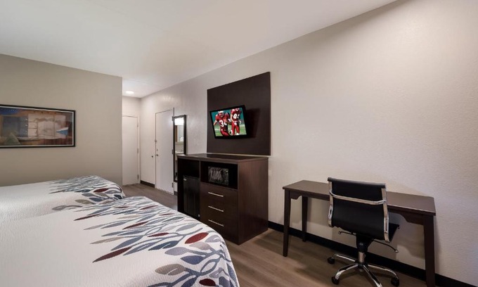 Featuring an outdoor pool, this Tucson, Arizona hotel is just 10 miles from Downtown Tucson. The University of Arizona is just 15 minutes’ drive away. Offering free Wi-Fi, each room provides a flat-screen satellite TV and an private bathroom at Red Roof Inn Tucson North. Air conditioning is featured throughout. Laundry facilities is also provided at Tucson North Red Roof Inn. Fax and photocopying services are offered throughout. This location offers 4 Electric Vehicle Charging Stations. Mike Jacob Sports Park is 5 minutes’ drive away. Tucson International Airport is less than 20 miles away from Red Roof Inn Tucson North.