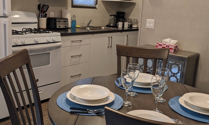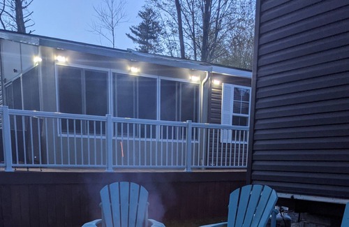 Comfy 3 BDRM cottage accommodates 6 guests (maximum 4 adults) backing onto wooded area where you can make family memories watching the wild life or sitting around the firepit at night. Enjoy the community pool, tennis courts or taking walks to the Marina where you can enjoy the restaurant and lounge area. Retreat to the cottage at the end of the day to just spend quality family time playing board games, card games or watching tv.