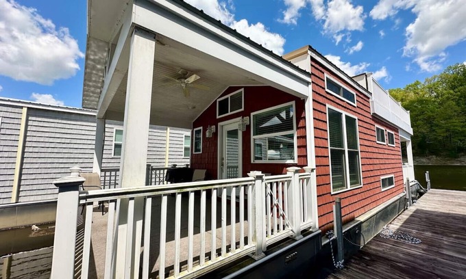 Looking to stay right on beautiful Lake Cumberland? Look no further than this beautiful stationary houseboat located at Lee’s Ford Marina! This 2 bed 1 bath includes a king size bed in the master and 2 queens on the lower level, fully stocked kitchen, washer and dryer, front patio, back deck and upper deck! Bring your boat and enjoy just walking out the door to touch the water!