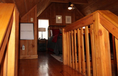 The cute cabin is situated in a woodsy area with two outdoor picnic tables, a large firepit with Adirondack chairs, and is isolated from other homes in the area. Inside, it possesses a cuteness factor of 10 and can easily house 5 people with a Murphy Bed to sleep two more. Sit outside and enjoy the firepit, tour the local woods, or stay inside and enjoy the big screen tv in the great room. Truly a "country paradise." Minutes away finds beautiful Nolin Lake or take the kiddos on a ferry ride to Mammoth Cave National Park. Additional area attractions include Blue Holler ATV Park, Shady Hollow Golf Course, and disk golf.