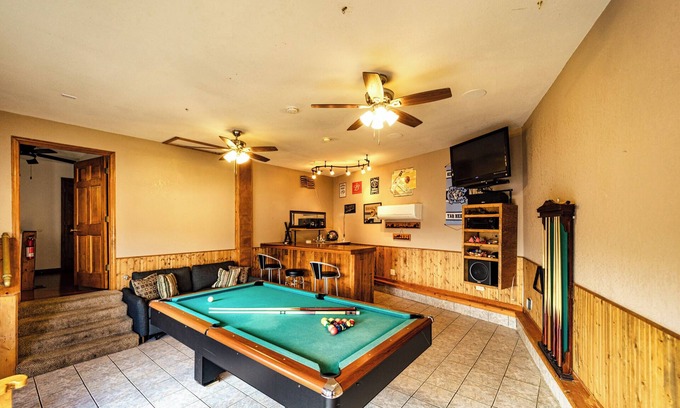 With so much to do and see, we’re fairly certain you’ll never want to leave! This home ensures you can take full advantage of every activity by land or by water, starting with the large, private dock ideal for swimming, sunbathing, and your own boat slip for breezy access in and out. Heading up to the deck, you’ll find everything you need for entertaining days in the sun and fresh air including barbeque and flat top grills, a TV, stereo system, and plentiful seating for enjoying casual conversation and meals al fresco. Continuing your outdoor exploration away from the home, Jetz Trampoline Park is within a 5-minute walk or you can take a short car ride over to Miner Mike’s, a family fun center featuring an interactive maze, rides, games, and snack bar. Lake of the Ozarks State Park is 4 miles away, feeding the nature lover in you with an endless shoreline, hiking trails, and hidden coves. Golf enthusiasts will want to check out the surrounding courses of Bear Creek, The Oaks at Margaritaville Lake Resort, and Osage National featuring challenging greens and fairways surrounded by stunning natural beauty. With options for shopping and dining also right within walking distance of the home, there’s truly something everyone can enjoy doing here!