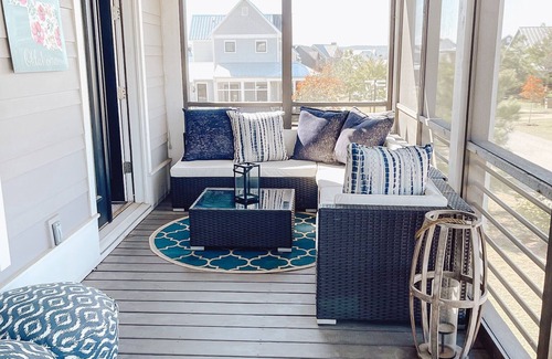 The home features 3 spacious bedrooms, and a third story loft that children of all ages will love, and a landing perfect for watching a movie or enjoying board games. The home features two screened in porches and a veranda complete with outdoor fireplace. Enjoy an evening by the fire pit while roasting s’mores and relaxing by the moonlight. The property is also equipped with a grill.